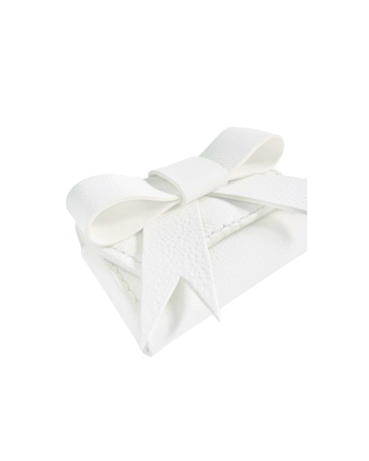 やさしい白色が魅力の白ヌメで仕立てた、リボンがポイントのミニウォレットです。素朴で上品な表情は、シンプルな装いにそっと溶け込み、日々の仕草を少しだけ特別にしてくれます。